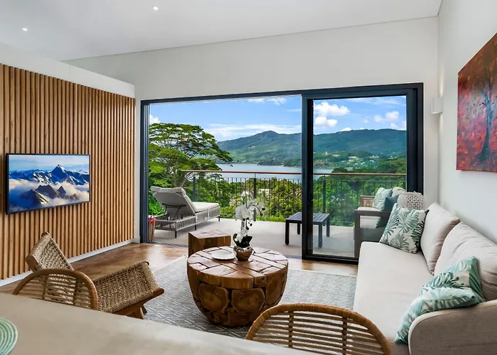 L'appartamento Red Palm Luxury Villas With Private Pools Baie Lazare si trova a soli 9 minuti a piedi da Club Liberte Casino e accoglie gli ospiti con una piscina con trampolino e una piscina coperta. Quest'appartamento offre un deposito bagagli e una vista sulle montagne.